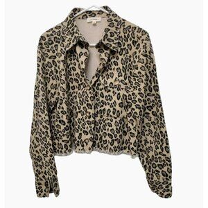 EE:Some Leopard Print Cropped Raw Edge Denim Jacket, size Small, Animal Shacket
