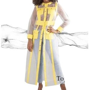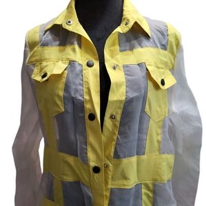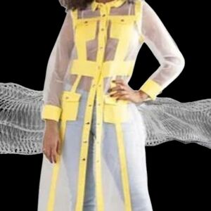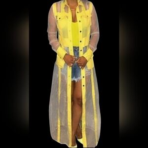 Stylish yellow sheer longline shirt dress. Features button-down front and collar.
