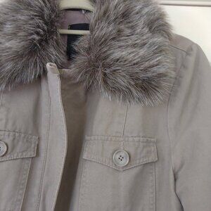 EEUC JACK. FAUX FUR REMOVABLE COLLAR ZIP FRONT DRAWSTRING WAIST JACKET LARGE