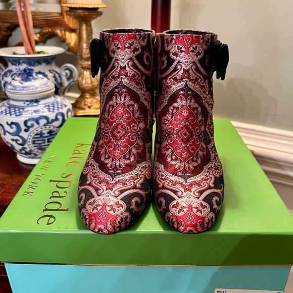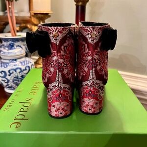 EEUC Kate Spade NY Holly Red Black Gray Brocade Booties Boots with Bow Size 6.5