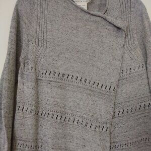 EEUC MAX STUDIO GREY HEATHER DUSTER STYLE CASCADE FRONT SWEATER SIZE LARGE