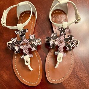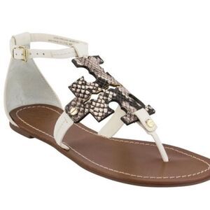 EEUC Tory Burch Phoebe Snakeskin White Thong Sandals Shoes Size 6.5