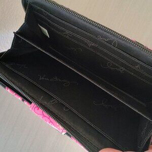 EEUC VERA BRADLEY PIROUETTE PINK DESIGN TURNLOCK FABRIC WALLET 5" X 8"