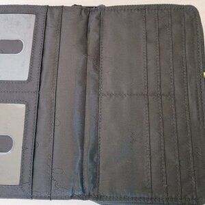 Silver-tone turnlock section opens up to 7 credit card slots, cash sleeve and 2 ID covered slots.