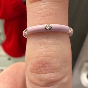 EF Collection: 3 DIAMOND & BLUSH ENAMEL RING