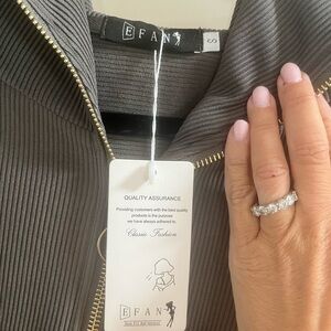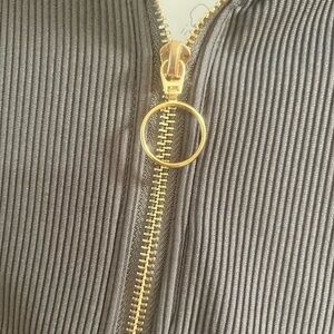 Stylish ribbed jacket in gray. Features a zip-up design.
