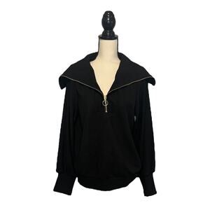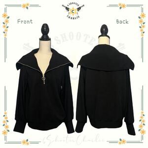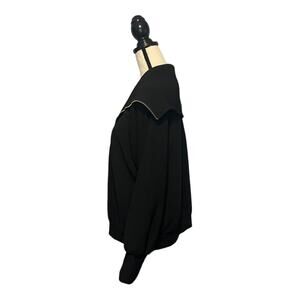 EFAN Women's Black Rib-Knit Oversized Sweater Medium Sailor Nautical Collar