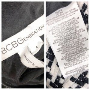 A must-have, edgy-chic statement dress BCBGeneration! One of those timeless ultra-chic pieces that are easy to throw on and look amazing. Desinged with flattering for all body types shift silhouette with dropped waist, scoop neckline, short sheer chiffon sleeve, black & white checkered knit material, black faux leather pleated lined skirt, and zipper on the back for the easy way in and out. It will look gorgeous with a bold lip and booties. Approx measurements: Bust: 30", Length: 32", Waist: 16". Made from 94% Acrylic and 6% Polyester. Excellent condition from a smoke-free home.