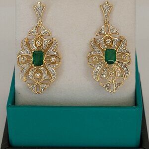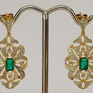 The emeralds have a combined total weight of approximately 1.00 carat, while the diamonds add an additional 0.85 carat, enhancing the earrings with brilliance and refined detail. Measuring 1.5" in length and 0.75" in width, the pair weighs 6.21 grams and is hallmarked “EFFY 14K”. These beautiful earrings come complete with their original EFFY box, ideal for gifting or safekeeping. Anyone will cherish this pair of striking and elegant earrings! Exceptional style and luxury in the same purchase. Perfect addition to any fine jewelry collection!