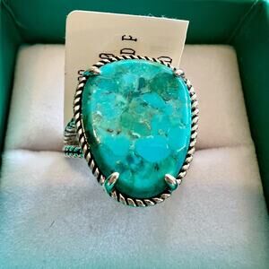 This ring from Effy is crafted from sterling silver and showcases a stunning turquoise stone, offering a timeless and elegant design. This ring is absolutely stunning.