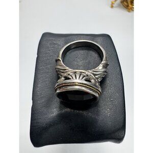 EFFY Luxury 925 Sterling Silver & 14K Gold Black Onyx Ring Sz 8.75 Ornate Signed