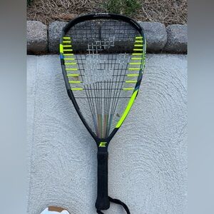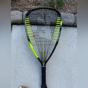 E-Force G2 Racquetball racket. Black frame with neon yellow accents. Light use on grip. Great for new or advanced players