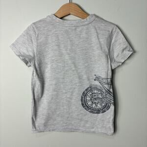 Light gray tee with a vintage motorcycle graphic on the front. Size is 5, GUC for a small spot as pointed out.