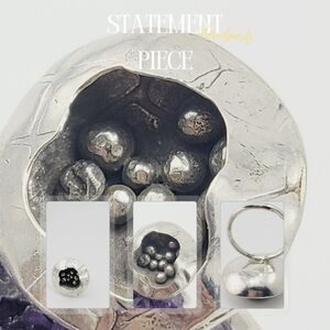 EGG NEST STATEMENT RING HANDMADE IN STERLING SILVER METAL SIZE 7.5