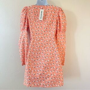 EGGIE X UO Puff Sleeve Button Front Fitted Babydoll Dress Size S Peach Dot NWT