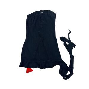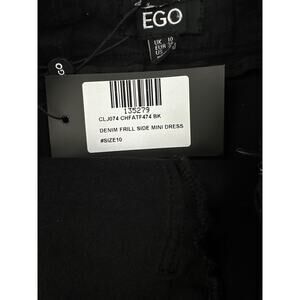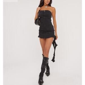EGO - Frill Side Bandeau Denim Mini Dress in Black