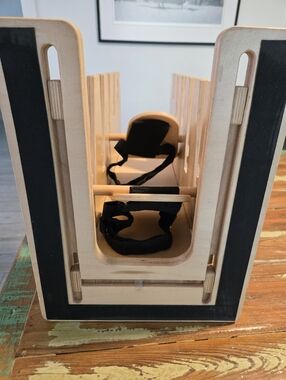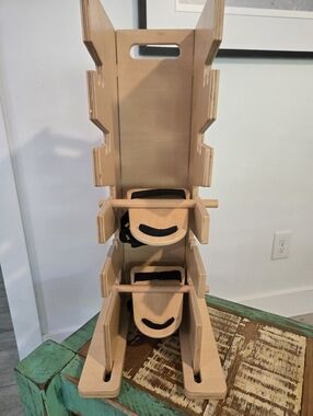 Here's an EGOSCUE Method MULTI-POSITIONING THERAPY TOWER with FOOT PEDAL. Stands 24 3/4" tall. Base is 13 1/2" x 10 3/8".