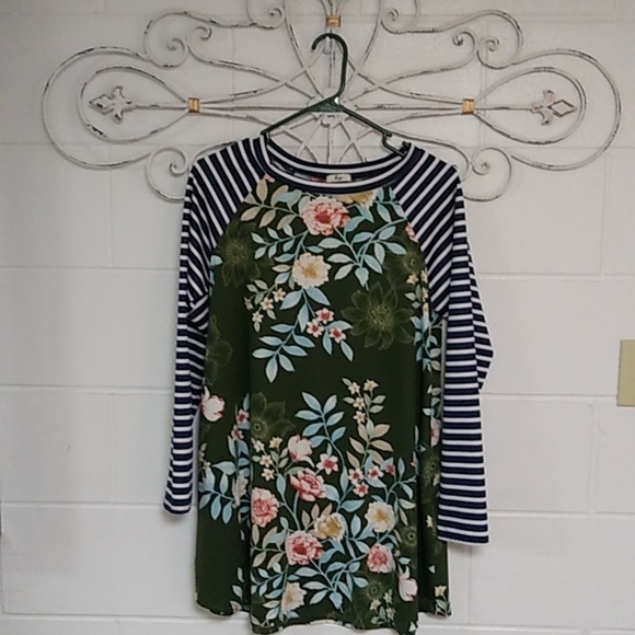 FLORAL & NAVY STIPES AN OUTSTANDING COMBINATION IN A SOFT KNIT. WEATHER YOU CHOOSE TO WEAR IT AS A TUNIC OR MINI DRESS, BELT IT OR LET IT FLOW IT'S SURE TO BE A COMFY, EASY WEAR FAVORITE.
