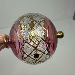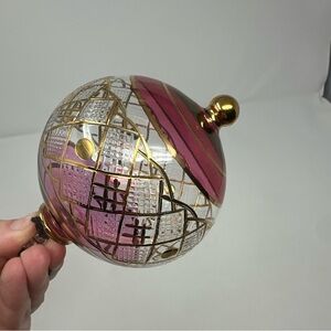 Add a touch of elegance to your home with this beautiful pink and gold ornament. Perfect for any Christmas decor style.