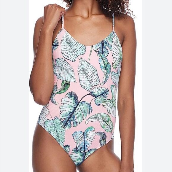 EIDON Women's pink and green floral textured Allie One Piece Tank Style Swimsuit size Smal