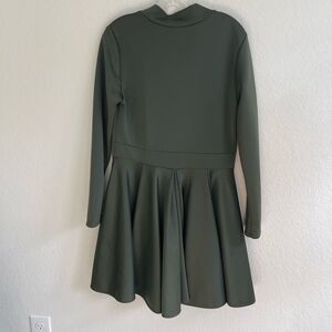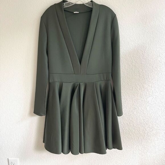 EIEN Womens Dress Green Plus 1XL Satin long sleeve vneck Modest Classic minimal