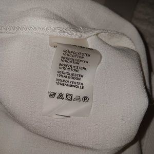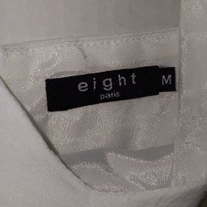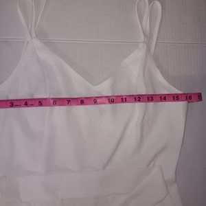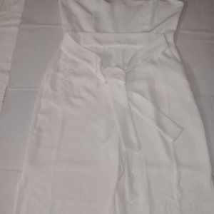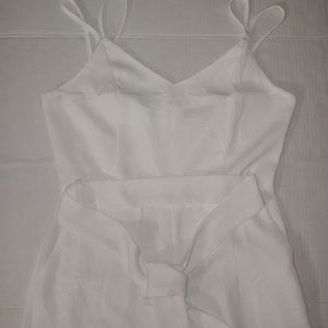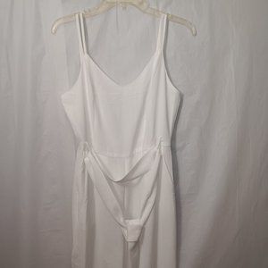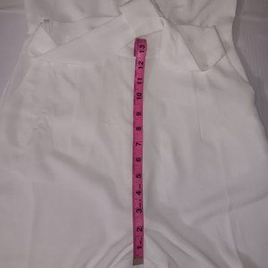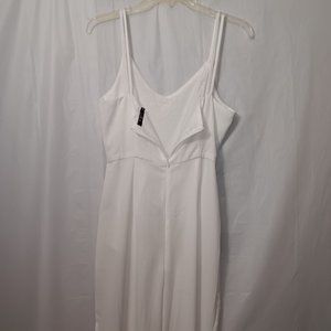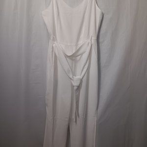 Size Medium - Eight Paris slit leg pants jumpsuit has zip up back and tie belt in the color White the material is 90% Polyester 10% Cotton (Gently Used Pre Owned Condition)