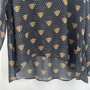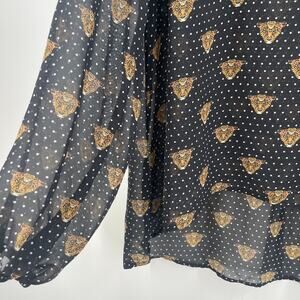 EIGHT SIXTY Blouse Size Large Leopard Face Polka Dot Sheer Contemporary Dots