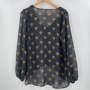 EIGHT SIXTY Blouse Size Large Leopard Face Polka Dot Sheer Contemporary Dots
