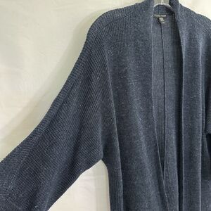 EILEEN FISHER 100% ORGANIC LINEN Knit 3/4 Sleeve Open Cardigan Size MEDIUM