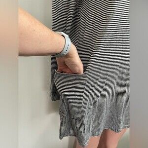 EILEEN FISHER 100% Organic Linen Jersey Mini Striped Tunic Pockets Size SMALL