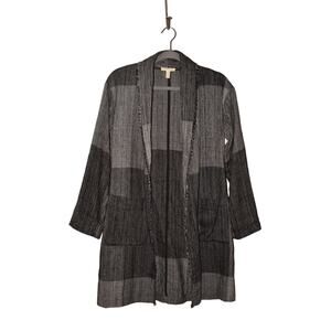 EILEEN FISHER $278 Color-Block Shawl Collar Open Jacket Black/Gray XXS/XS