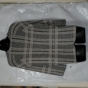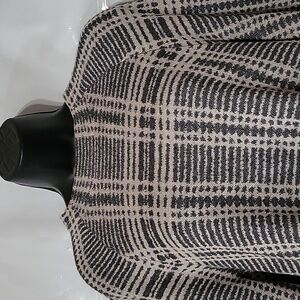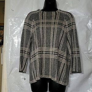 EILEEN FISHER 3/4 SleeveWindowpane Boatneck Sweater Designer S/P Grey Tencel Bld