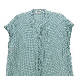 EILEEN FISHER Amalfi Puckered Organic Linen Shirt Dress Mandaric Collar LARGE