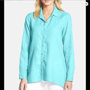 EILEEN FISHER Aqua Blue Organic Irish Linen Tunic Top Side Slits - Large