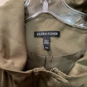 EILEEN FISHER Army Green Drawstring Waist Hooded Jacket Fully Lined Size S