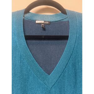 EILEEN FISHER Artic Green Royal Alpaca Colorblock V-Neck Sweater, Sz M