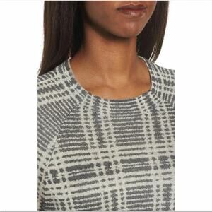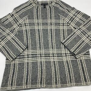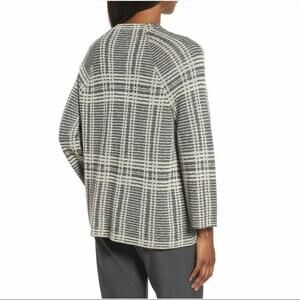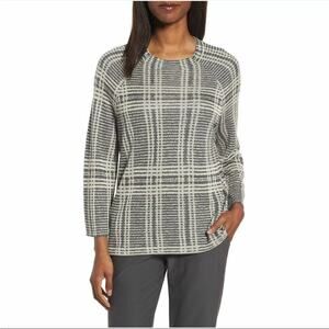EILEEN FISHER Ash Gray Sleek Tencel Merino Wool Plaid Knit Boxy Sweater Large