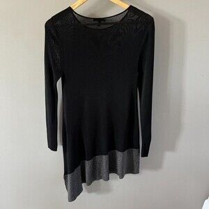 EILEEN FISHER Asymmetrical Black Tunic With Metallic Silver Bottom | Size XS