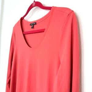 EILEEN FISHER Asymmetrical Hem Tunic Top Coral Jersey Knit Long Sleeve Women M