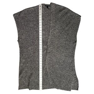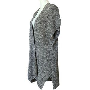 EILEEN FISHER Black & White Linen/ Wool Marled Knit Long Cardigan Sweater Sleeveless M