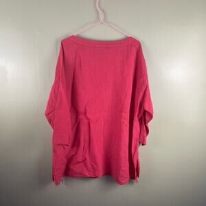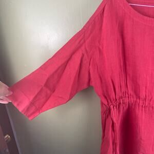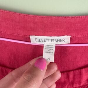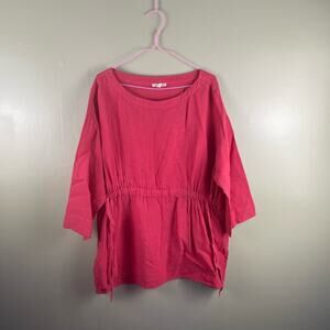 EILEEN FISHER Bateau Neck Drawstring Linen Blouse In Red