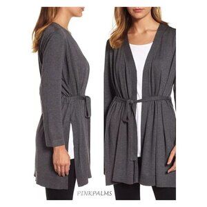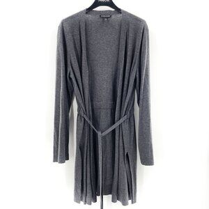 EILEEN FISHER Belted Gray Open Cardigan Tencel Organic Cotton Silk Slits