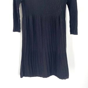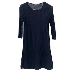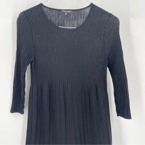 EILEEN FISHER Black 100% Wool Rib Release Pleat Dress
