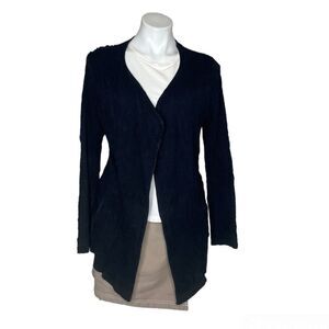 EILEEN FISHER Black Cardigan Open Front High Low Hem Cotton Viscose Size Medium