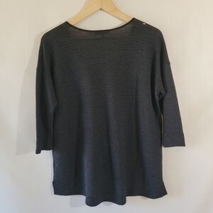 EILEEN FISHER Black Gray 100% Wool Top Size S Textured V-neck High-Low Cozy Goth