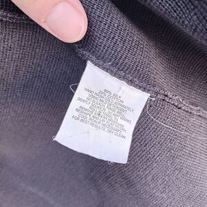 It's a black Gray color block Open Front style of Cardigan Sweater. Is a Silk cotton blend. It's in good pre-owned condition. Size tag is missing it fits and measures like a size small. See measurements to be sure of fit.