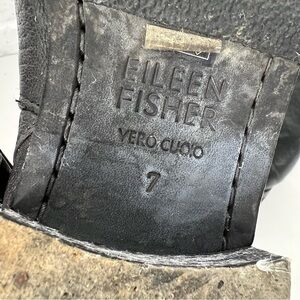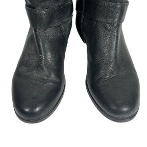 EILEEN FISHER Black Leather Moto Boots with Straps and Side Zips Size 7