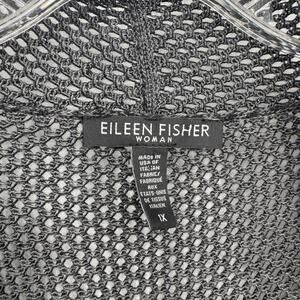 EILEEN FISHER Black Mesh Knit Open Front Cardigan Sweater Long Sleeve 1X
