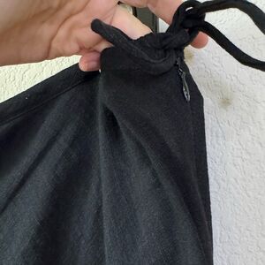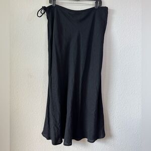 EILEEN FISHER Black Midi Skirt Linen Blend Drawstring Waist Size M