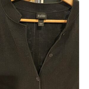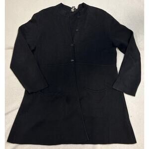 EILEEN FISHER Black Silk Blend Mandarin Collar Button Tunic Sweater Womens LARGE